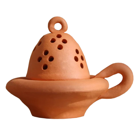 Sütőben égetett agyag füstölő, amely ellenáll a forró szén hőmérsékletének és a fém füstölőkkel ellentétben nem melegszik fel olyan gyorsan, így hordozható. Parafa állvánnyal van kiegészítve a jobb hőszigetelés érdekében. Kézzel készített füstölő, elegáns kartondobozba csomagolva, remek ajándékötlet.