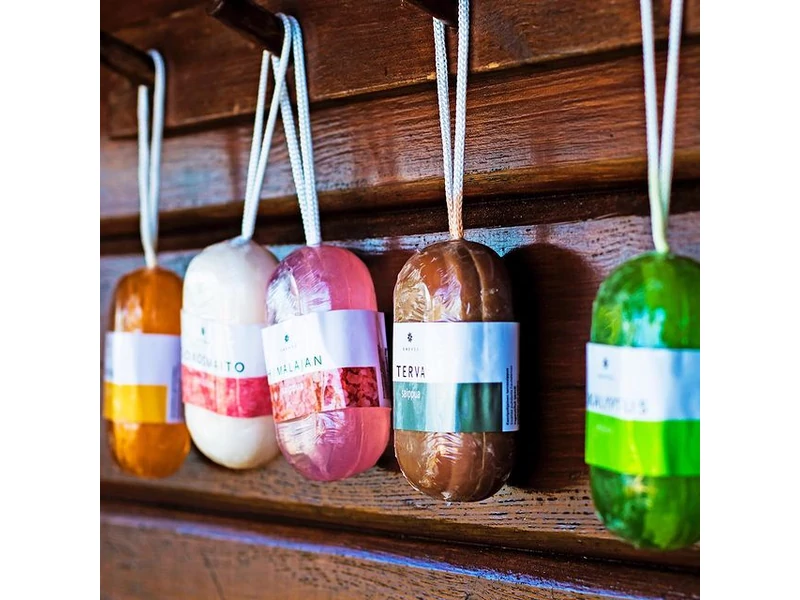 A szappan belsejébe rögzített zsinórral felakaszthatja a szappant és így kényelmesen tárolhatja – tisztálkodásra készen.
