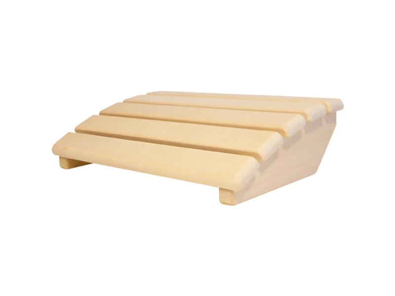 Lekerekített, abachi fából készült fejtámla, mely lehetővé teszi a kényelmes fekvést a szaunában.