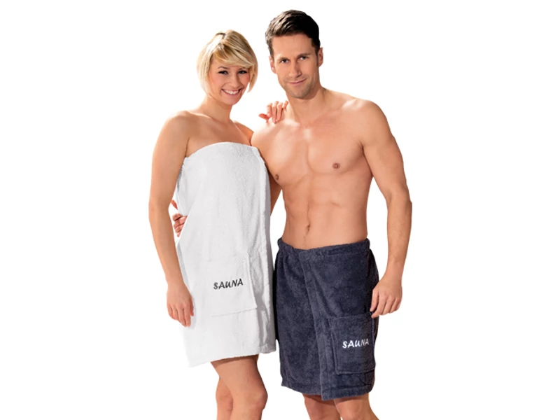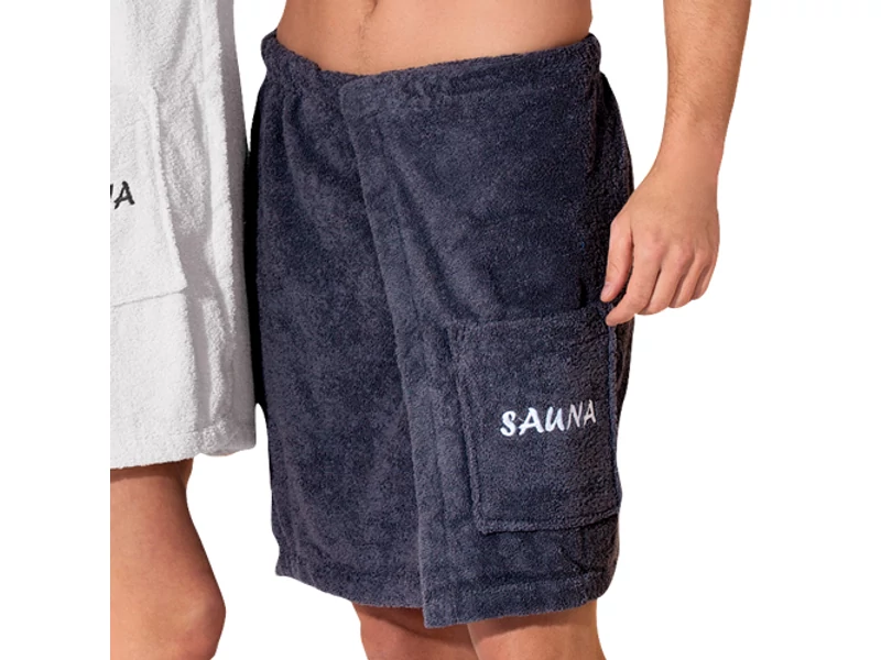 Kiváló minőségű frottír szauna-kilt 100%-os, 400 g / m² -es sűrűségű pamutból, nagyon puha és nedvszívó hatású.