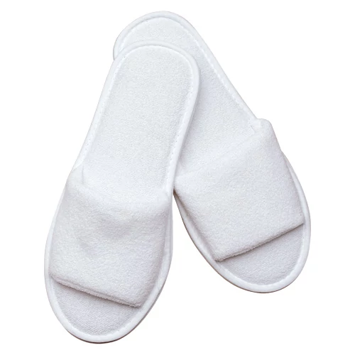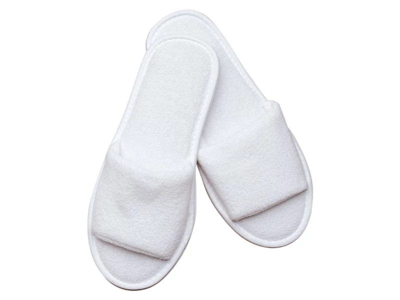 Komfortos fürdőpapucs műanyag talppal. Rendkívül kedvező árú és emellett még finom puha és kényelmes is. Anyaga frottír, elől nyitott orrú, 4 mm-es műanyag talppal. Emiatt viselése kifejezetten alkalmas medence- és szaunatérben is.