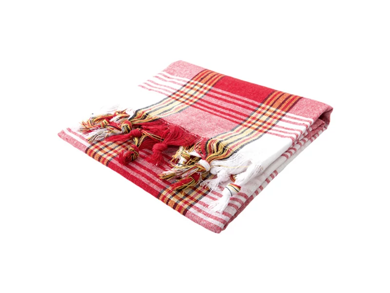 Hamam vagy szauna törölköző Karo, vörös és fehér kockás