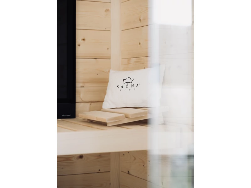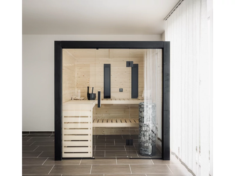 - Tömörfa szauna (40 mm tömör fenyőfa, keretek feketére pácolva)