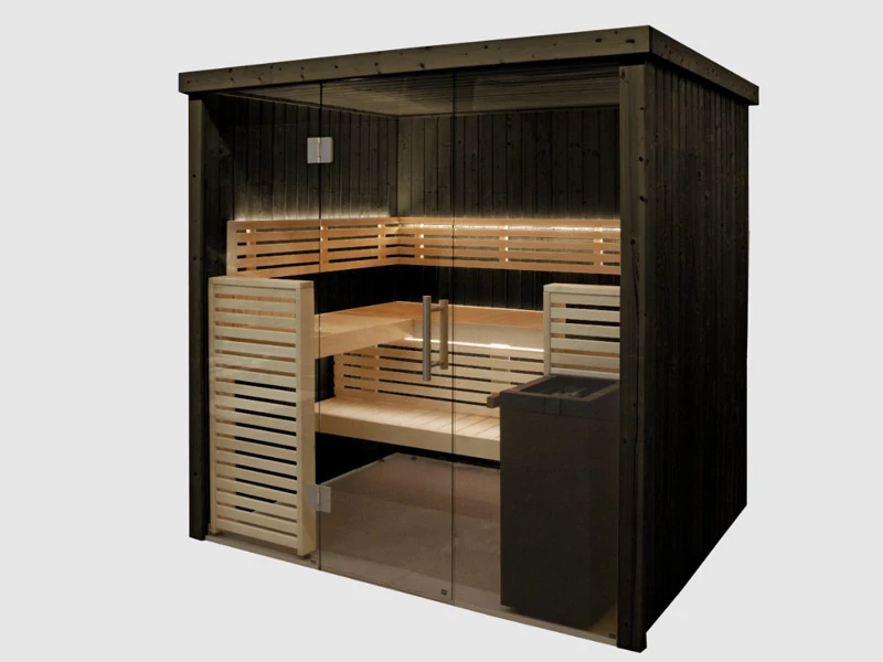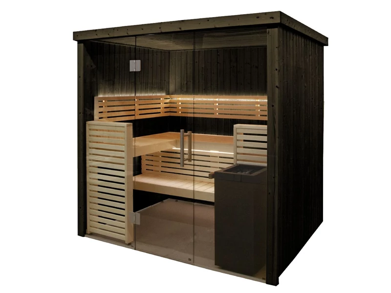 - Tradicionális design: fekete, kezelt északi fenyő burkolat a klasszikus „savusauna” (füst szauna) hangulatáért.