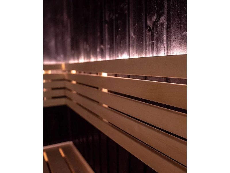 - RGBW LED világítás: a színváltós fényekkel személyre szabható a szauna hangulata – egyetlen gombnyomással )opcionálisan kérhető)