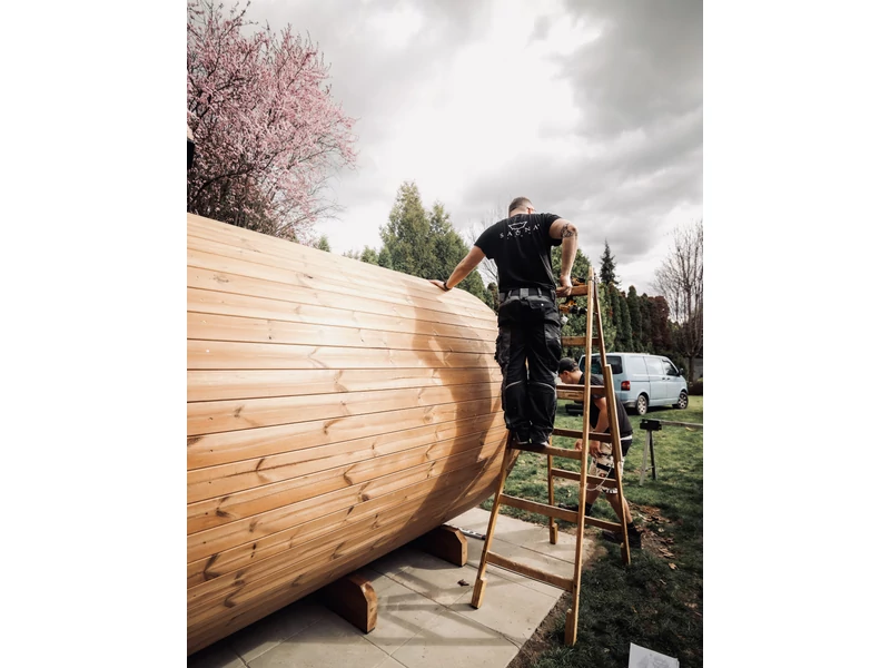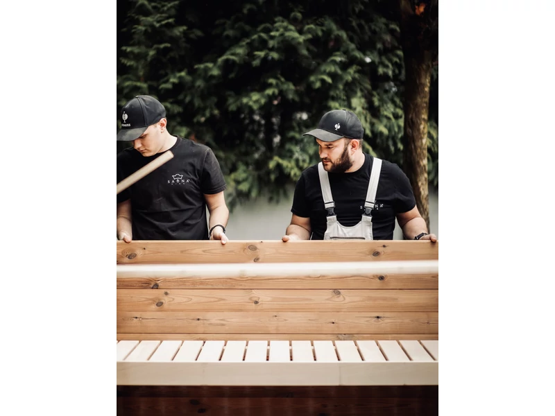 Kész szaunáinkhoz érthető, képekkel illusztrált útmutatót biztosítunk, amely megkönnyíti a felépítést. Ha azonban Ön inkább tapasztalt szakembereinkre bízná a munkát, szaunaépítő csapatunk néhány óra alatt teljesen készre szereli szaunáját.