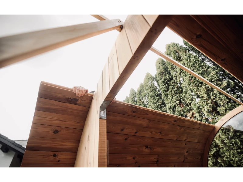- A szauna tetejét időjárásálló bitumenes zsindely borítja.