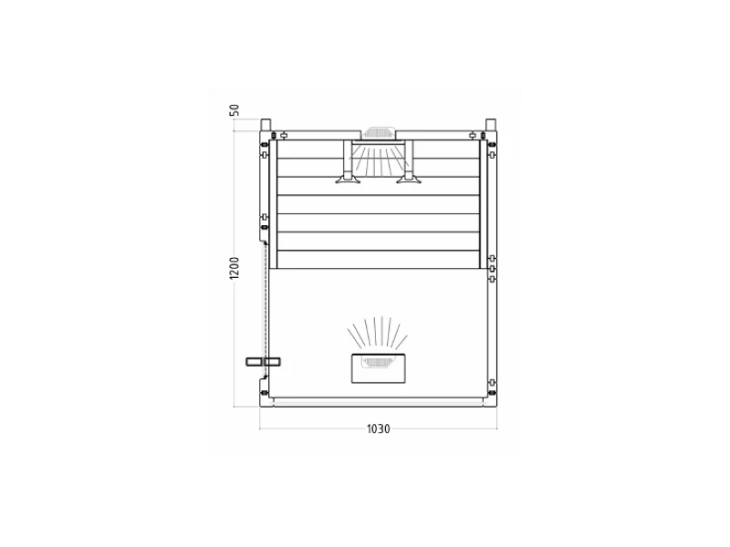 - A szauna külsõ mérete: 1250 x 1030 x 2000 mm