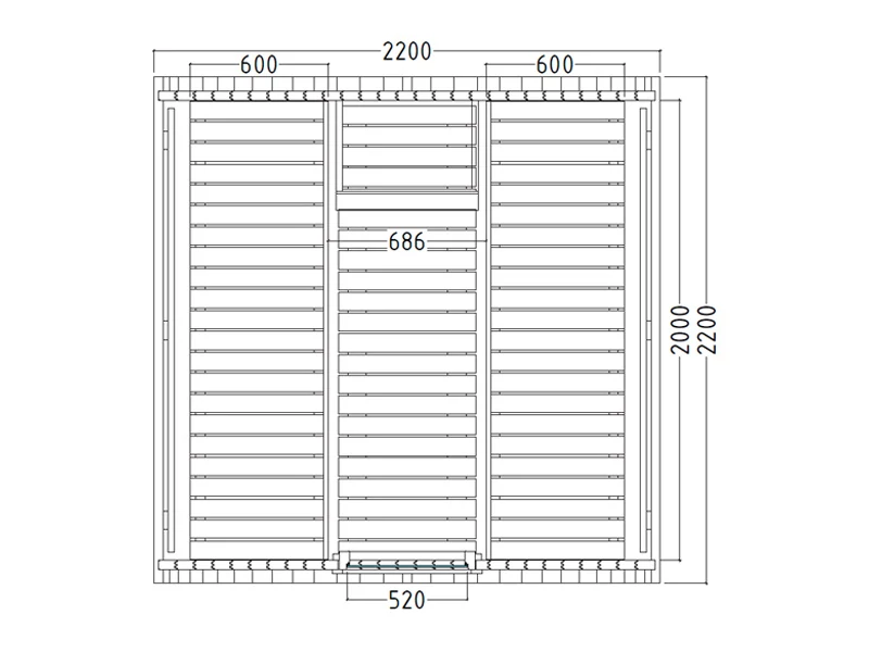- A szauna tartozéka még egy kétrészes lábrács illetve kályhavédő (szauna kályha opcionálisan kérhető, javasolt kályha teljesítmény: 9kw)