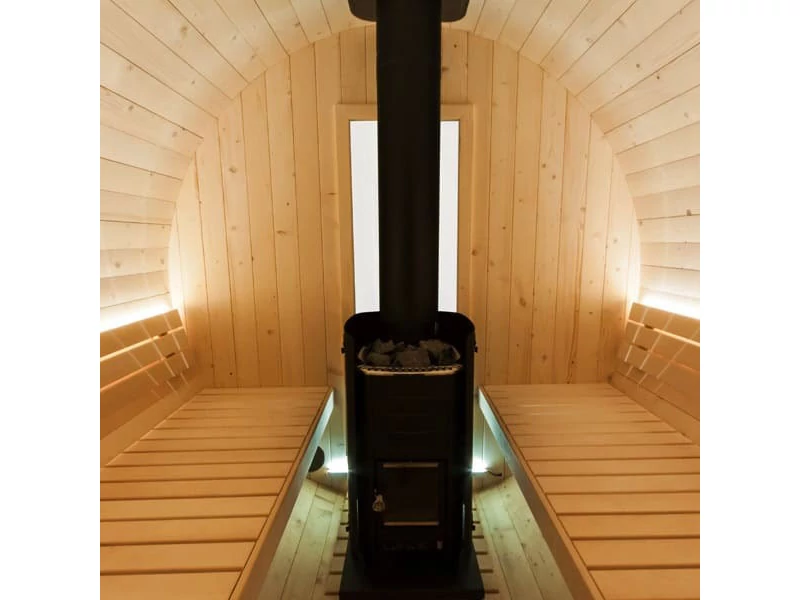 KÉNYELMES: Élvezze az egyedülálló kényelmes szaunaélményt a saját hordószaunájában, egymással szemben ülhetnek és a hordó kerek formája kényelmes helyet biztosít és maradásra ösztönöz.