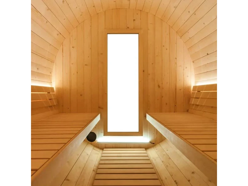 Kerek formájának rendkívül fontos előnye van: mivel nem rendelkezik sarkokkal, kevesebb lesz a felfűtési idő (energiatakarékos!), illetve a kerek forma megkönnyíti a meleg levegő egyenletes keringését a szaunában, így teremtve tökéletes szauna klímát.