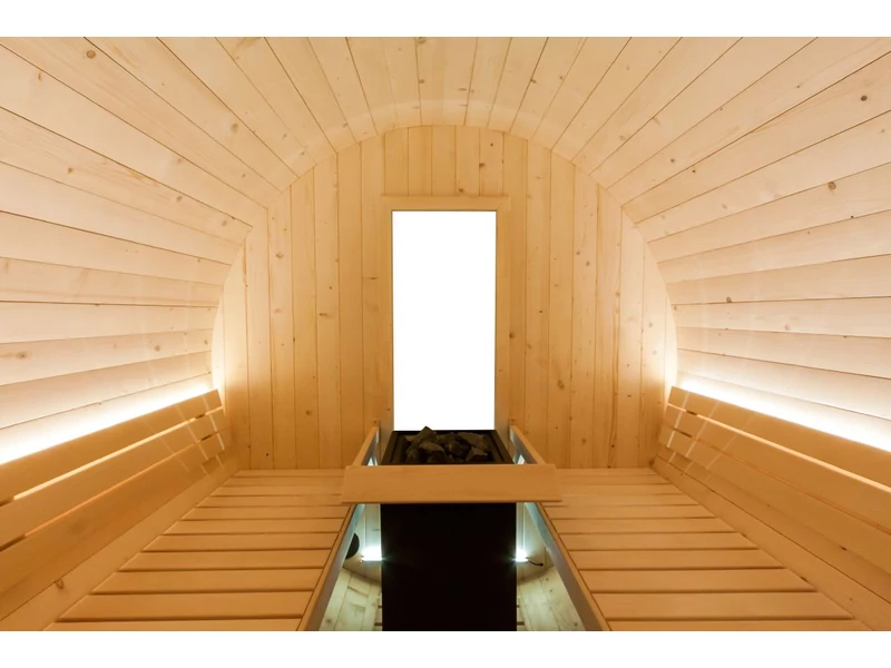 ENERGIAHATÉKONY: A hordószaunában a szokványos négyszögletű szaunákkal szemben kiesnek a kihasználatlan területek, mint pl. a padok alatt vagy a sarkokban. Ezáltal csökken az effektíve térfogat és ezzel a szükséges kályhateljesítmény.