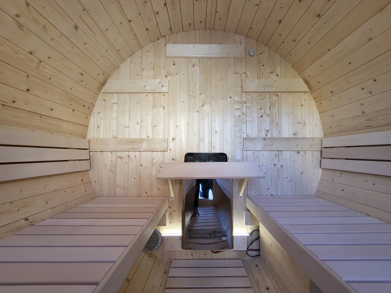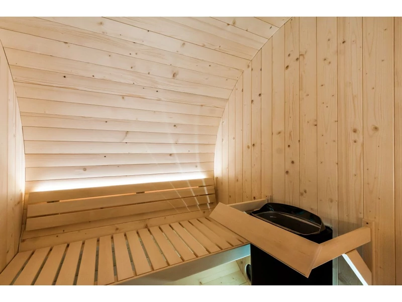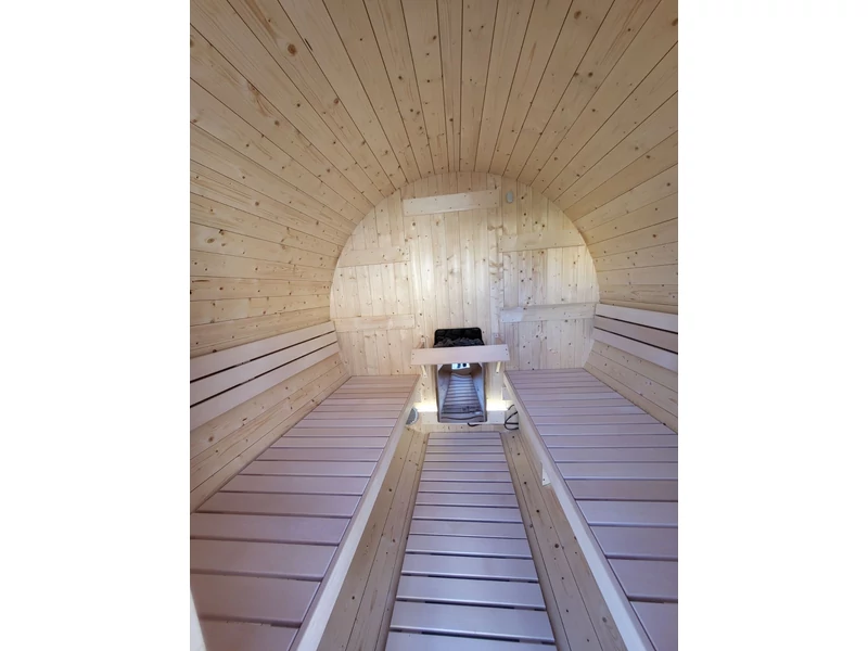KÉNYELMES: Élvezze az egyedülálló kényelmes szaunaélményt a saját hordószaunájában, egymással szemben ülhetnek és a hordó kerek formája kényelmes helyet biztosít és maradásra ösztönöz.