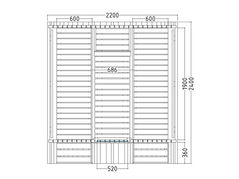 - A szauna tartozéka még egy kétrészes lábrács illetve kályhavédő (szauna kályha opcionálisan kérhető, javasolt kályha teljesítmény: 9kw)
