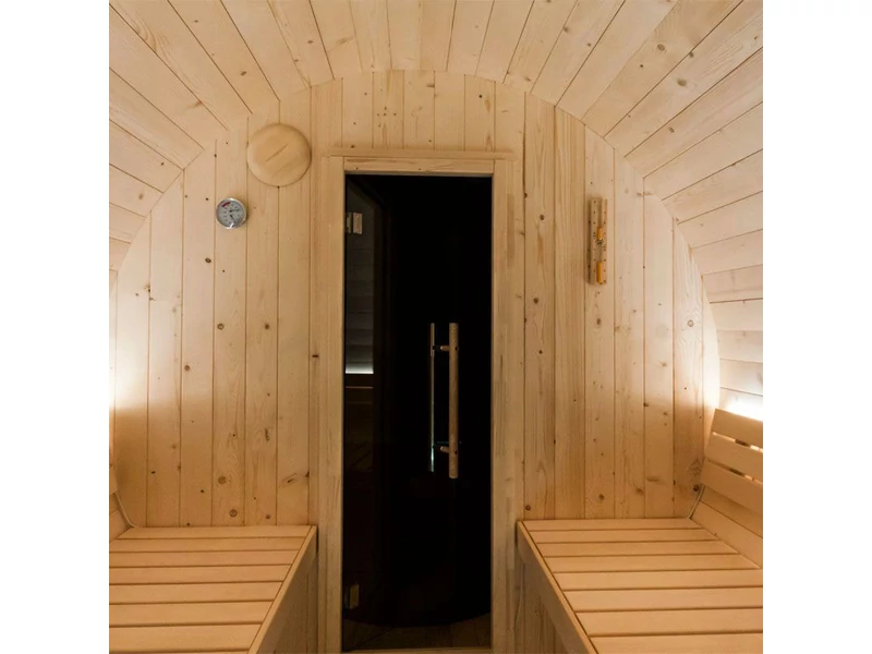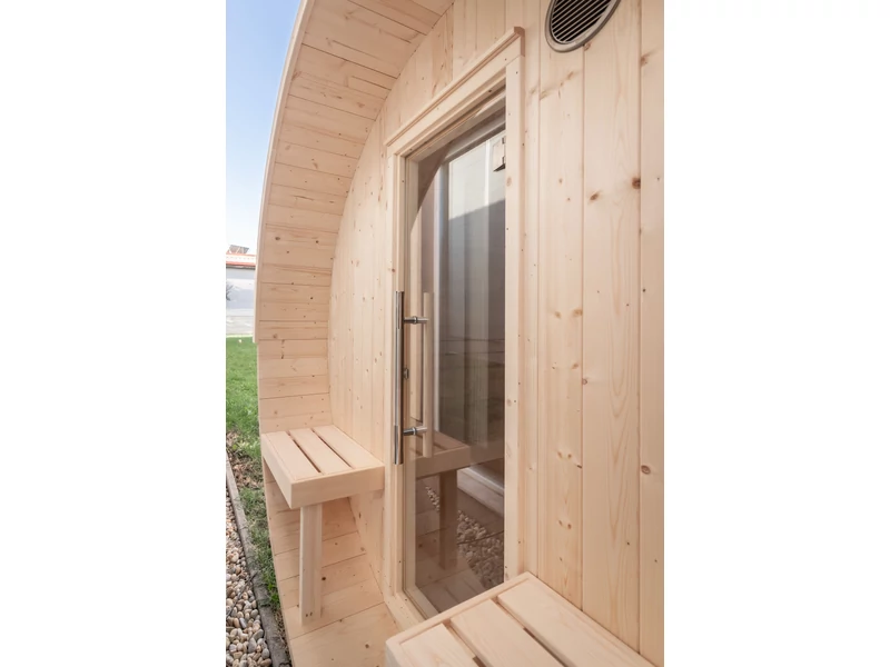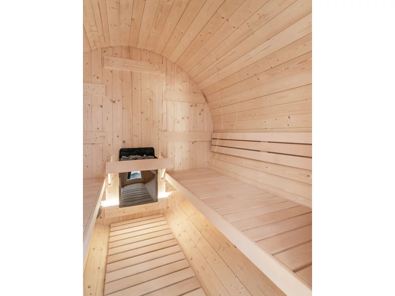 Kerek formájának rendkívül fontos előnye van: mivel nem rendelkezik sarkokkal, kevesebb lesz a felfűtési idő (energiatakarékos!), illetve a kerek forma megkönnyíti a meleg levegő egyenletes keringését a szaunában, így teremtve tökéletes szauna klímát.