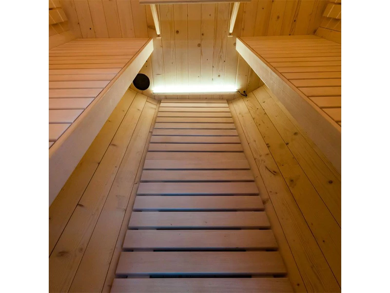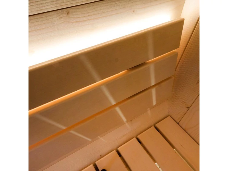 - A szauna kellemes hangulatáról melegfehér LED szalag gondoskodik (760mm, dimmerelhető, opcionálisan kérhető RGB színváltós táviányító is)
