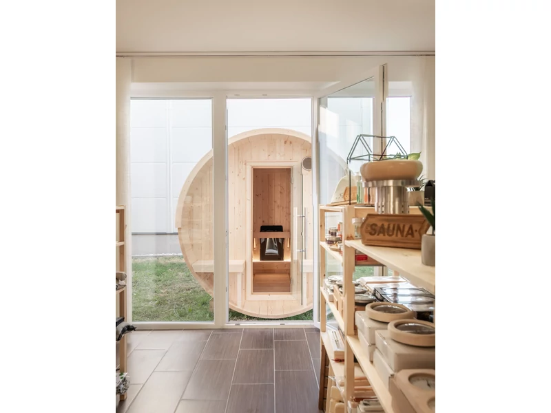 SZÉP KIEGÉSZÍTÕ: Élvezze saját kicsi wellness oázisát, a tökéletes kis „nyugi-sarkot”, hogy kikapcsolódjon a hétköznapoktól. Egy hordószauna felértékeli életminõségét és ezen felül gyönyörű kiegészítõje lehet kertjének.
