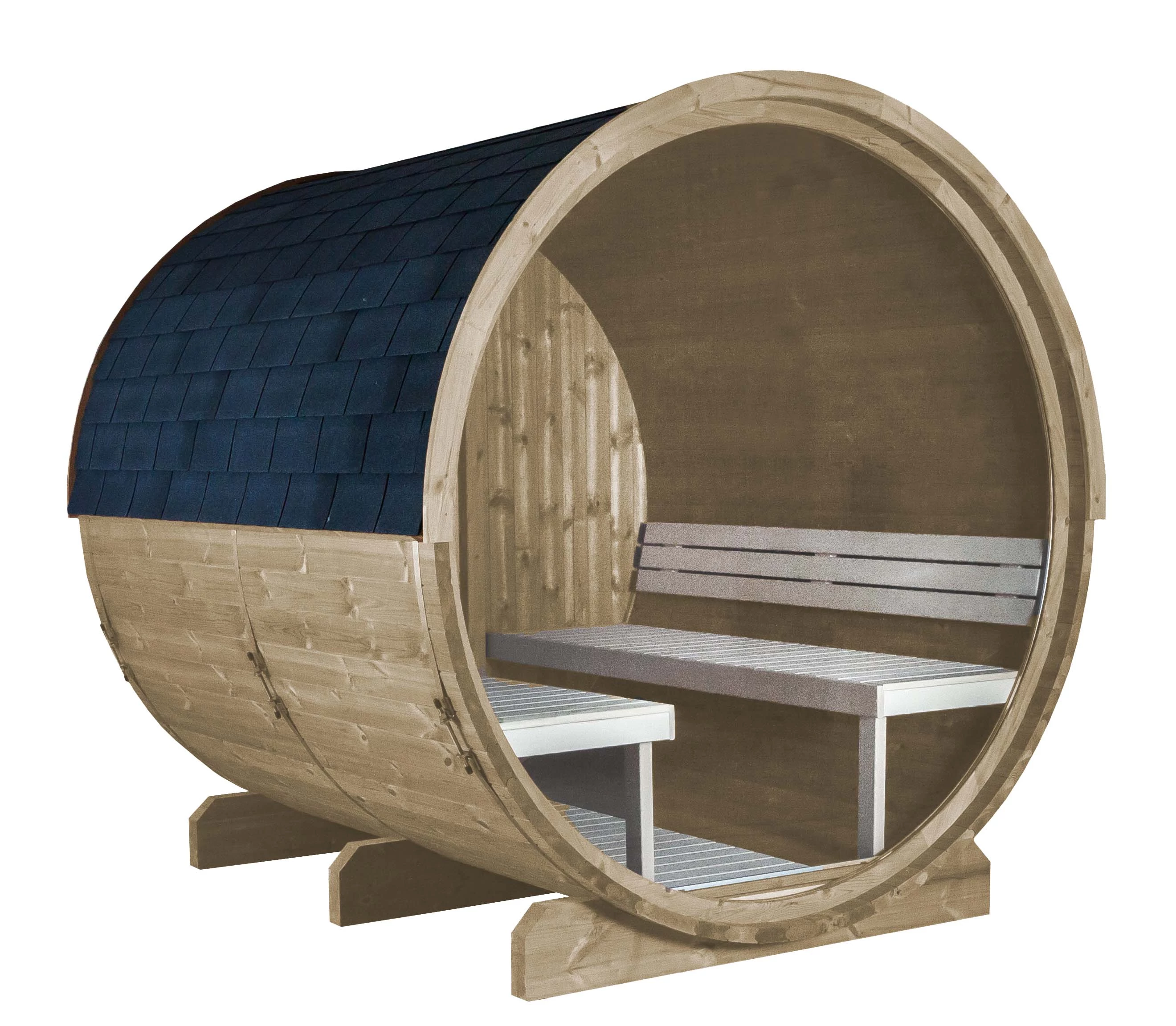 GYORS FELFŰTÉSI IDÕ: A hordószauna optimális formája és a tömör fa jó szigetelési tulajdonságai garantálják a gyors felfűtést.