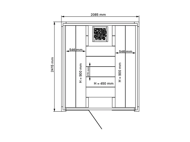 A Solide sorozat különlegessége a 49 mm vastag, tömör, kétoldalt gyalult északi fenyő fal- és mennyezetszerkezet, amely kivételes stabilitást, szigetelést és prémium látványt biztosít. A széles szaunalambéria nemcsak időtálló, hanem elegáns is – a szauna már ránézésre is a luxus és minőség benyomását kelti.
