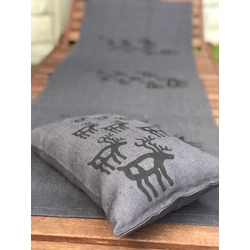 Pikkupuoti Szauna fekvőkendő 100% vászonból, szürke, rénszarvas mintával