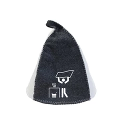 Szauna sapka, gyapjúkeverékből, szürke-fehér, szauna motívummal XI.