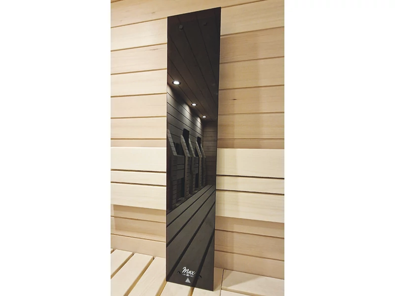 A Max infrasugárzónak nincsen kerete, teljesen síkba építhető a szauna fallal.