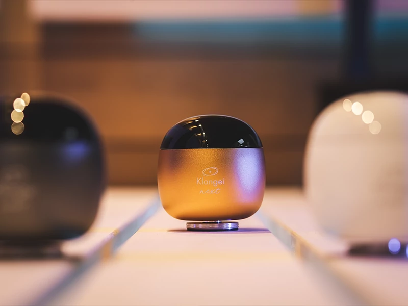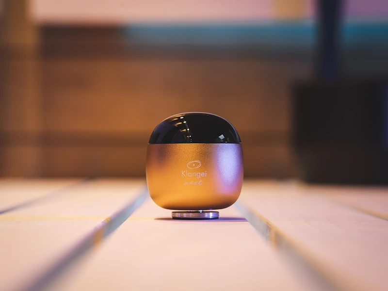 A Klangei Next a vibrációs zenelejátszók legújabb generációja és ezzel egyedülálló a világon. A Klangei next rezgését minden felületen képes átjuttatni (szaunafal, szaunaüveg, asztal, padló, ablak, stb.) és mint egy hangszóró működtetni azt.