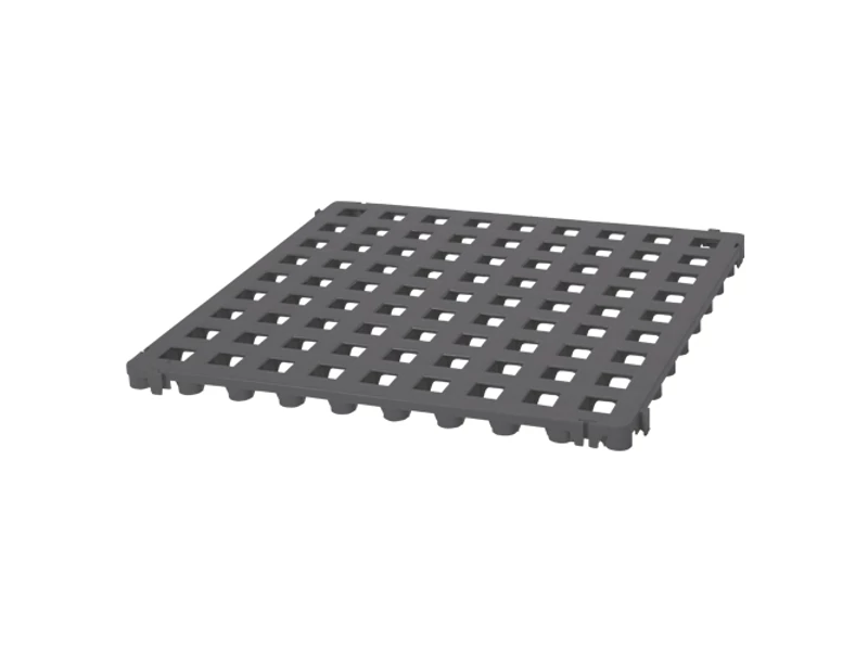 Viszonylag zárt felületének köszönhetően akár szék is ráhelyezhető. A padlótól való 25 mm távolság miatt kellemesen meleg és száraz. Összeállítása és szétbontása is rendkívül egyszerű. A rácsok éles késsel szabhatók. Klórra és vegyszerekre nem érzékeny.
