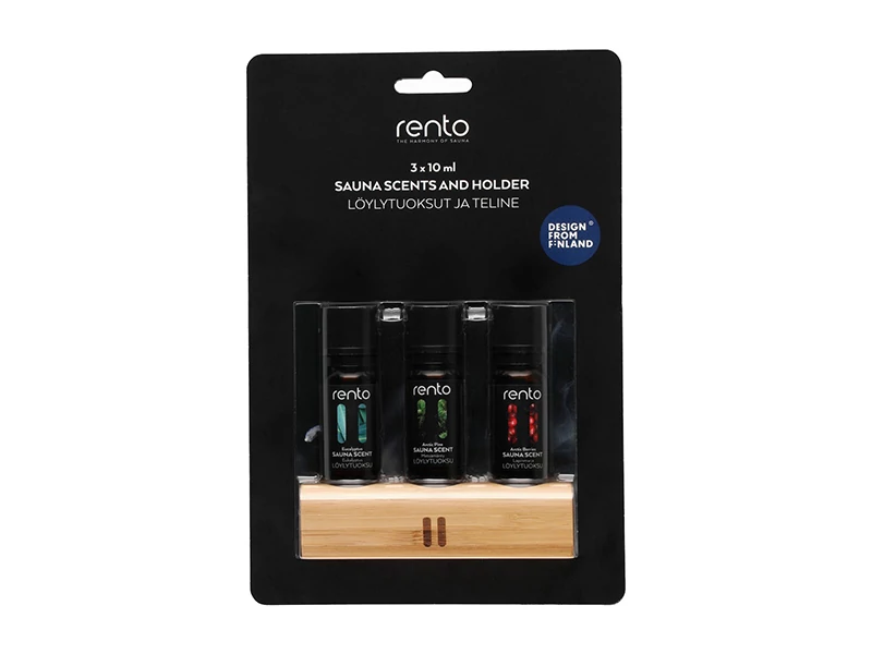 RENTO szauna ajándék szett, 3x10ml szauna illat, bambusz tartóban