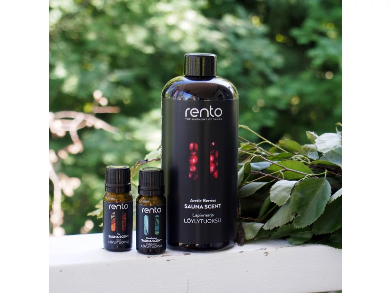 - Locsoljon az illatos vízből a szaunakövekre és hagyja, hogy a Rento szaunaillatok érzéki kényeztetésbe részesítsék.
