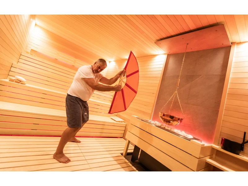 Ezt a professzionális, masszív legyezőt kifejezetten a szaunákban történő légtereléshez fejlesztették ki. Ezzel a legyezővel a szaunamester elegánsan és könnyedén irányíthatja a levegő áramlását, amellett, hogy nagyobb légtömeget mozgathat meg.