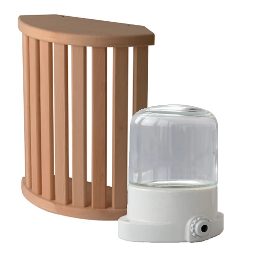 A búra felső és alsó része elölről nézve gömbölyített, hátulról pedig egyenes. A sarkok kialakításának köszönhetően tökéletesen passzol és könnyen felszerelhető a szauna sarkába.
