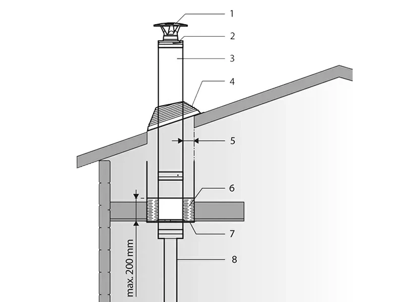 A füstelvezető rendszer még nagy hőmérsékletingadozásoknak is ellenáll. Kifejezetten fatüzelés szaunakályhákhoz, kisebb kandallókhoz és tűzhelyekhez lett tervezve.
